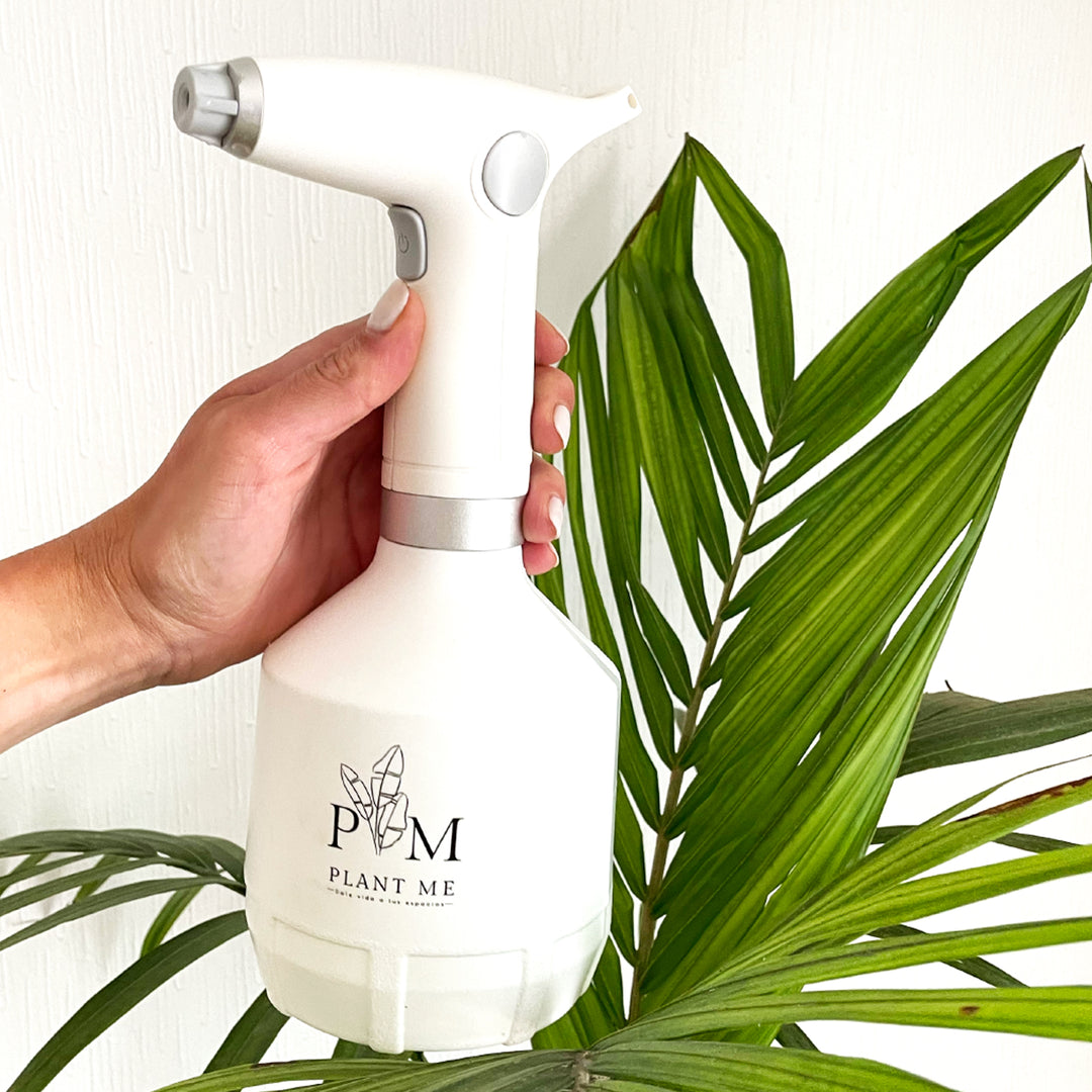 Rociar agua o algún producto como fertilizante o insecticida líquido a nuestras plantas. Regularmente a sus hojas para hidratarlas o limpiarlas.