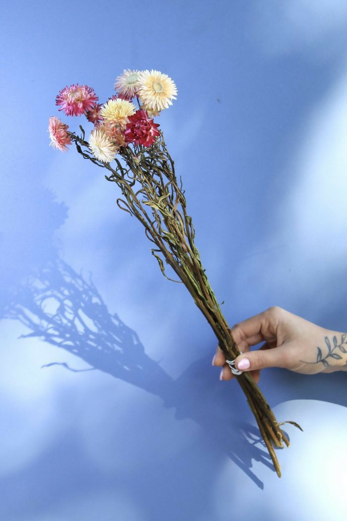 Incluye un ramo de Helicriso Rosado seco. Largo aproximado 35 cms.