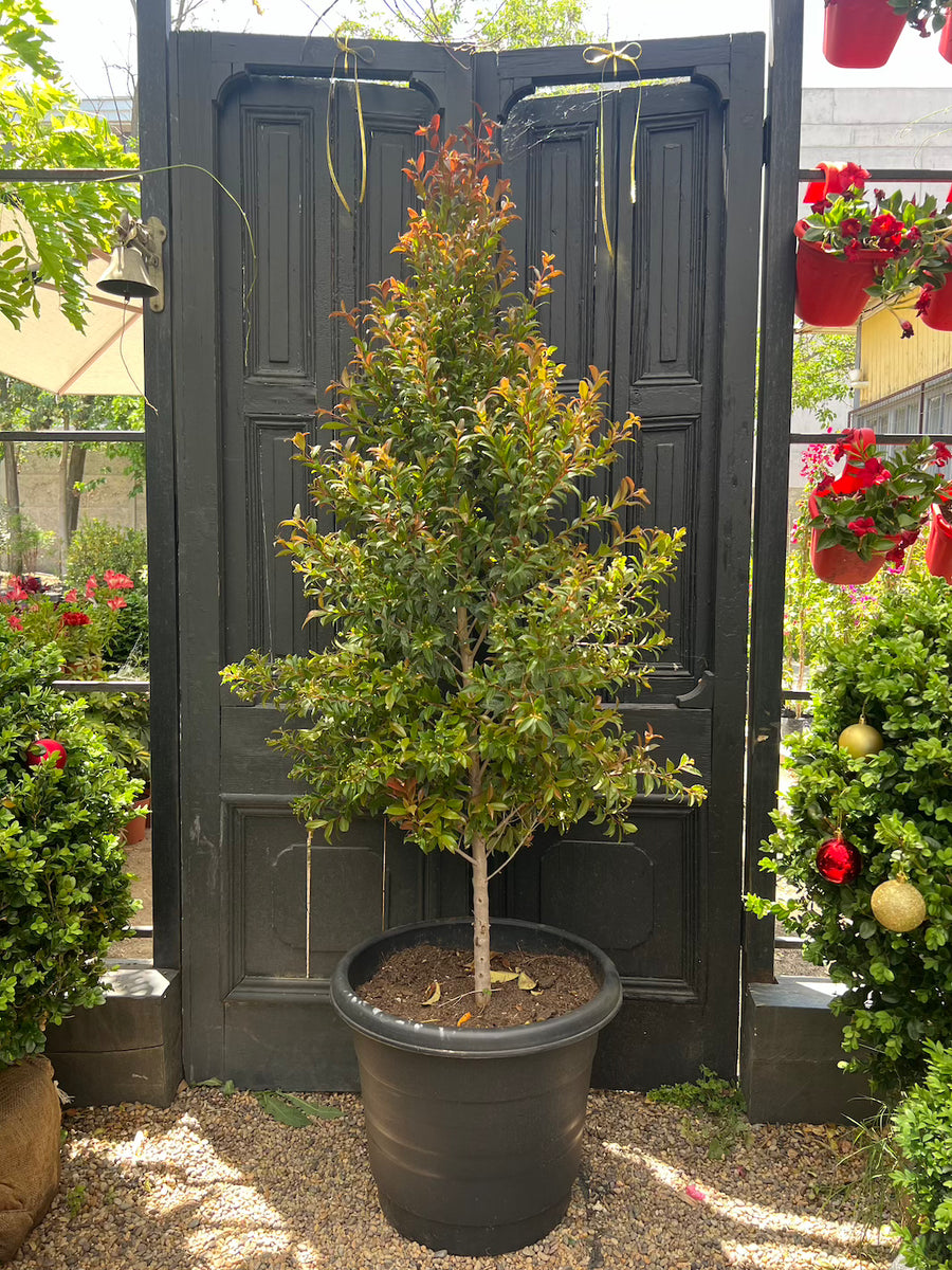 La Eugenia Myrtifolia es un árbol frutal, que aparte de ser muy decorativo, tiene múltiples beneficios, da frutos y además flor. La tenemos para ti en su formato pie alto, donde su tronco queda descubierto y forma una copa arriba que le da un toque de elegancia.